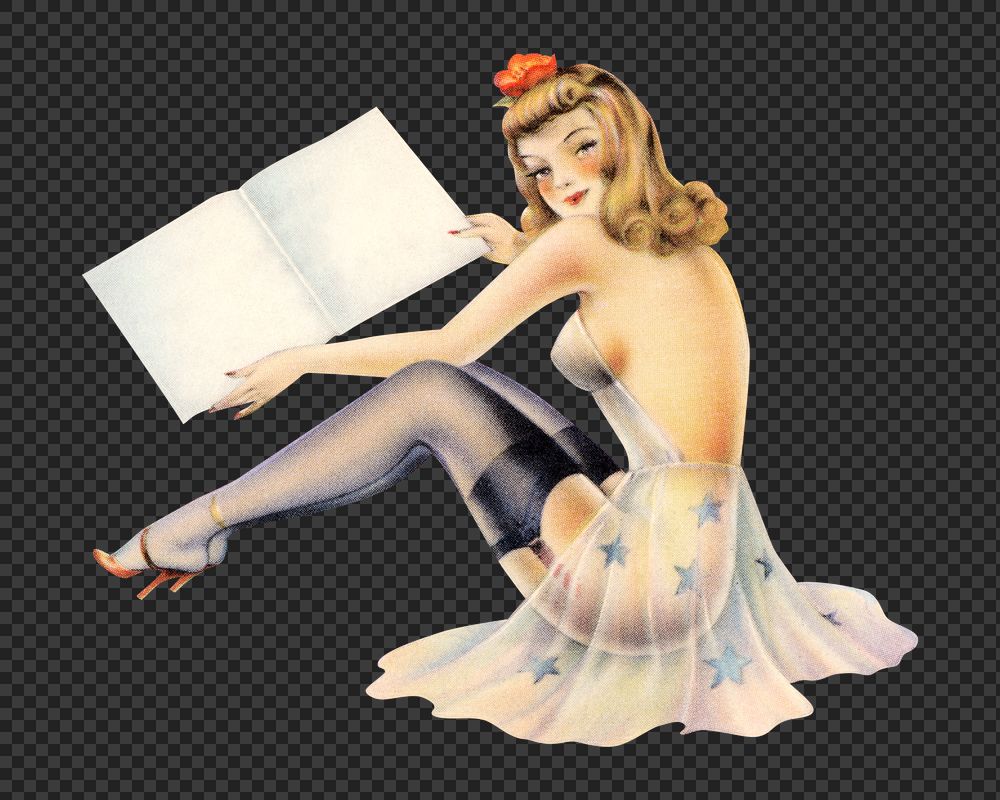 Vintage sexy woman png chromolithograph art, transparent background. Remixed by rawpixel.