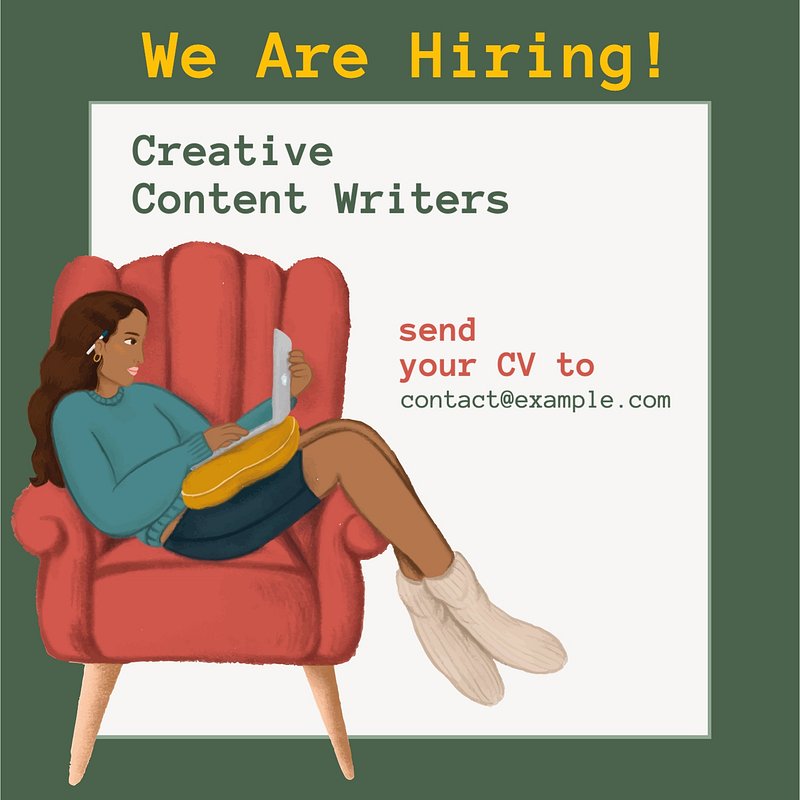 Edit TemplateBusbusSaveSaveEdit Templatepnglaptoptechnologynotebooksocial mediatemplatewomanon bedCreative writer hiring Instagram post template, editable textMorePremium designInfoEdit TemplateView personal and business licenseGet Premium from justā$8 / monthExplore PremiumFree design resources and creative tools0Free foreverJoin FreeShareVideosTemplatesSimilarRemote jobs Instagram post template, editable texthttps://www.rawpixel.com/image/11925613/remote-jobs-instagram-post-template-editable-textView licenseJob search blog banner template, editable texthttps://www.rawpixel.com/image/12478486/job-search-blog-banner-template-editable-textView licenseSocial media content Instagram post template, editable texthttps://www.rawpixel.com/image/11478530/social-media-content-instagram-post-template-editable-textView licenseJob search poster template, editable text and designhttps://www.rawpixel.com/image/12478495/job-search-poster-template-editable-text-and-designView licenseSocial media content poster template, editable text and designhttps://www.rawpixel.com/image/11784862/social-media-content-poster-template-editable-text-and-designView licenseJob search Instagram story template, editable texthttps://www.rawpixel.com/image/12478493/job-search-instagram-story-template-editable-textView licenseGraduate student job fair Instagram post template, editable texthttps://www.rawpixel.com/image/11552815/graduate-student-job-fair-instagram-post-template-editable-textView licenseRemote jobs Instagram post template, editable texthttps://www.rawpixel.com/image/11219105/remote-jobs-instagram-post-template-editable-textView licenseSocial media content Instagram story template, editable texthttps://www.rawpixel.com/image/11784865/social-media-content-instagram-story-template-editable-textView licenseHiring Instagram post templatehttps://www.rawpixel.com/image/14449135/hiring-instagram-post-templateView licenseGraduate student job fair poster template, editable text and designhttps://www.rawpixel.com/image/12493921/graduate-student-job-fair-poster-template-editable-text-and-designView licenseFreelancer Facebook post template, editable designhttps://www.rawpixel.com/image/12655630/freelancer-facebook-post-template-editable-designView licenseRoll on the weekend Instagram post templatehttps://www.rawpixel.com/image/14874987/roll-the-weekend-instagram-post-templateView licenseCreative writer hiring Instagram post template, editable texthttps://www.rawpixel.com/image/11821943/creative-writer-hiring-instagram-post-template-editable-textView licenseSocial media content blog banner template, editable texthttps://www.rawpixel.com/image/11784842/social-media-content-blog-banner-template-editable-textView licenseHybrid work Instagram post template, editable texthttps://www.rawpixel.com/image/9822314/hybrid-work-instagram-post-template-editable-textView licenseSocial Media Manager Instagram post template, editable texthttps://www.rawpixel.com/image/11953313/social-media-manager-instagram-post-template-editable-textView licenseHiring Instagram post templatehttps://www.rawpixel.com/image/14777675/hiring-instagram-post-templateView licenseWork from home Instagram story template, editable social media designhttps://www.rawpixel.com/image/9230923/work-from-home-instagram-story-template-editable-social-media-designView licenseCreative writing seminar Instagram post template, editable texthttps://www.rawpixel.com/image/10192926/creative-writing-seminar-instagram-post-template-editable-textView licenseJob search Instagram post template, editable texthttps://www.rawpixel.com/image/11552821/job-search-instagram-post-template-editable-textView licensePodcaster needed Instagram post templatehttps://www.rawpixel.com/image/13490573/podcaster-needed-instagram-post-templateView licenseSocial media Instagram story template, editable social media designhttps://www.rawpixel.com/image/9230847/social-media-instagram-story-template-editable-social-media-designView licenseCreative writer hiring Facebook post templatehttps://www.rawpixel.com/image/12985792/creative-writer-hiring-facebook-post-templateView licenseTech network Instagram post template, editable texthttps://www.rawpixel.com/image/9820956/tech-network-instagram-post-template-editable-textView licenseCreative writer hiring Instagram post template, editable texthttps://www.rawpixel.com/image/11778302/creative-writer-hiring-instagram-post-template-editable-textView licenseGraduate student job fair Instagram story template, editable texthttps://www.rawpixel.com/image/12493922/graduate-student-job-fair-instagram-story-template-editable-textView licenseCreative writing seminar Facebook story template, editable designhttps://www.rawpixel.com/image/12696686/creative-writing-seminar-facebook-story-template-editable-designView licenseSocial media Facebook post template, editable social media adhttps://www.rawpixel.com/image/9230845/social-media-facebook-post-template-editable-social-mediaView licenseProduct manager job Instagram post template, editable texthttps://www.rawpixel.com/image/11791225/product-manager-job-instagram-post-template-editable-textView licenseGraduate student job fair blog banner template, editable texthttps://www.rawpixel.com/image/12493920/graduate-student-job-fair-blog-banner-template-editable-textView licenseHiring Instagram post template, editable texthttps://www.rawpixel.com/image/11798364/hiring-instagram-post-template-editable-textView licenseWork from home Facebook post template, editable social media adhttps://www.rawpixel.com/image/9231351/work-from-home-facebook-post-template-editable-social-mediaView licenseFlexible work Instagram post template, editable texthttps://www.rawpixel.com/image/11525779/flexible-work-instagram-post-template-editable-textView licenseWork from home Facebook post template, editable social media adhttps://www.rawpixel.com/image/9230920/work-from-home-facebook-post-template-editable-social-mediaView licenseCreative writer hiring Instagr