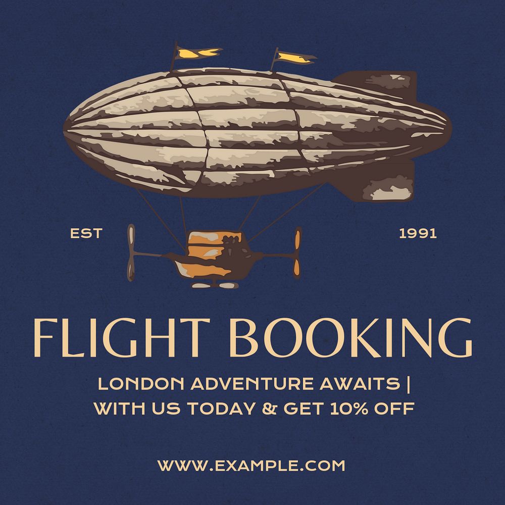 Flight booking Instagram post template, editable text