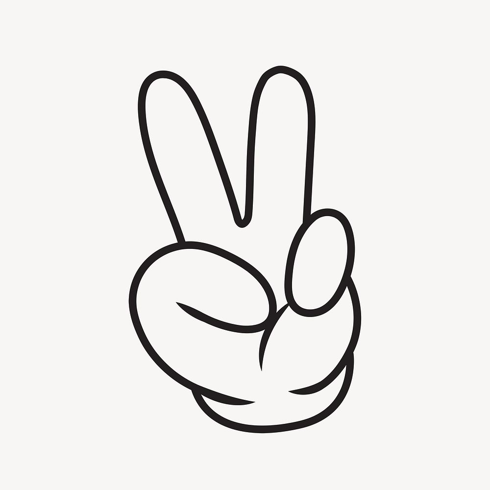Cartoon peace hand sign, gesture line art illustration