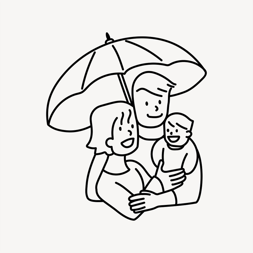 Family under umbrella doodle collage element vector