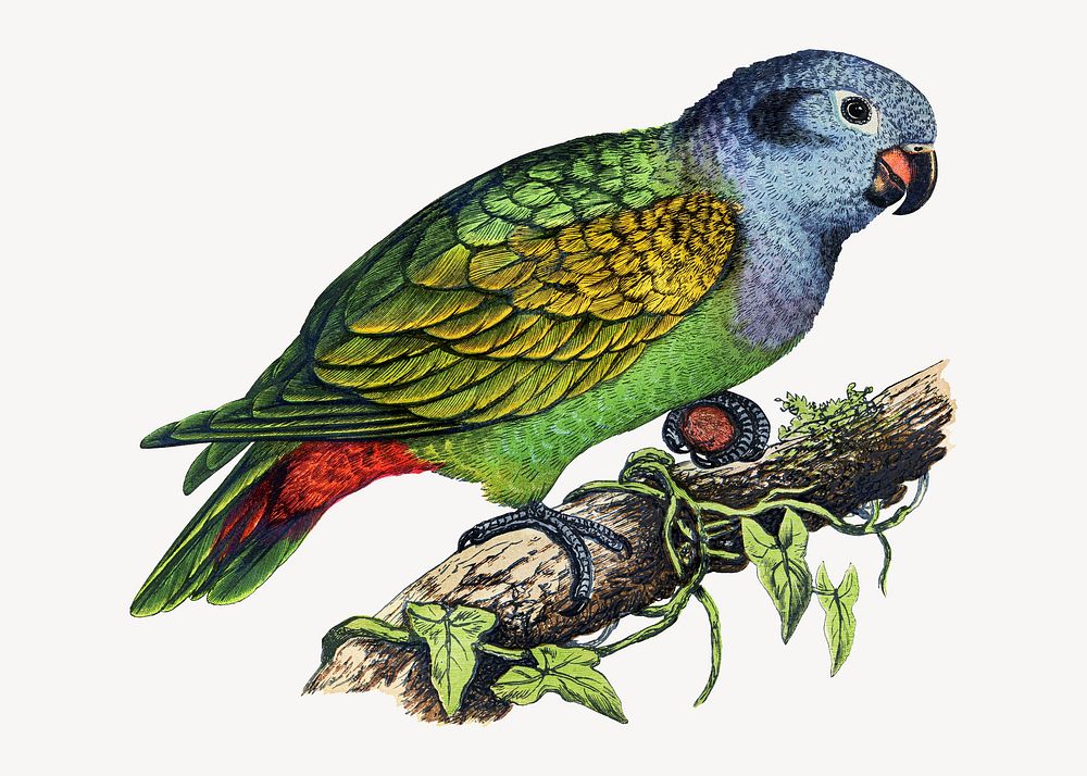 Red-vented parrot vintage bird illustration. Remixed by rawpixel.