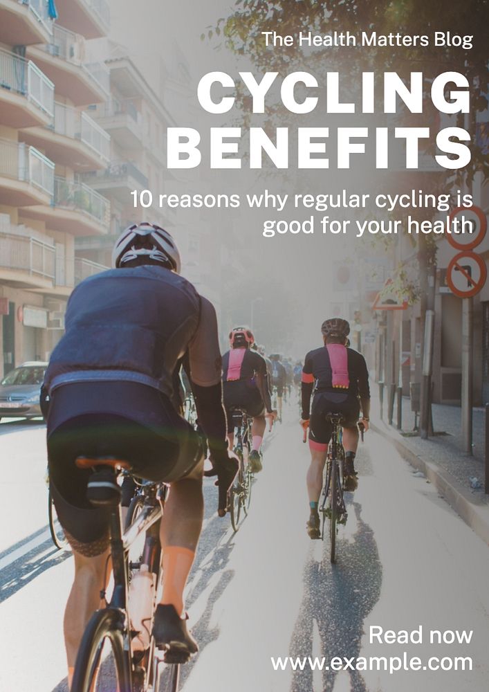 Cycling benefits poster template, editable text and design