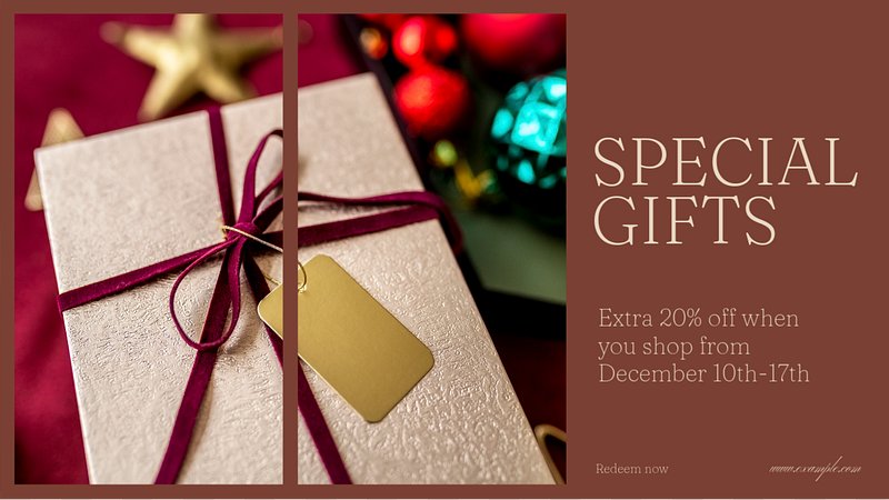 Edit TemplateSaveSaveEdit Templatechristmas presentsdesktop wallpaperpngxmastreegift boxwallbowMerry Christmas blog banner template, editable textMorePremium designInfoEdit TemplateView personal and business licenseGet Premium from just$8 / monthExplore PremiumFree design resources and creative tools0Free foreverJoin FreeShareVideosTemplatesSimilarHoliday gifts blog banner template, editable texthttps://www.rawpixel.com/image/12703005/holiday-gifts-blog-banner-template-editable-textView licenseSpecial gifts blog banner template, editable texthttps://www.rawpixel.com/image/11494238/special-gifts-blog-banner-template-editable-textView licenseSpa resort voucher template, editable designhttps://www.rawpixel.com/image/12592115/spa-resort-voucher-template-editable-designView licenseChristmas countdown blog banner template, editable texthttps://www.rawpixel.com/image/11967129/christmas-countdown-blog-banner-template-editable-textView licenseChristmas gift blog banner template, editable texthttps://www.rawpixel.com/image/12458948/christmas-gift-blog-banner-template-editable-textView licenseChristmas gift voucher blog banner template, editable texthttps://www.rawpixel.com/image/11494283/christmas-gift-voucher-blog-banner-template-editable-textView licenseChristmas gift exchange, editable remixhttps://www.rawpixel.com/image/12750984/christmas-gift-exchange-editable-remixView licenseSeason's greetings blog banner template, editable texthttps://www.rawpixel.com/image/11451945/seasons-greetings-blog-banner-template-editable-textView licenseChristmas gift box mockup, editable designhttps://www.rawpixel.com/image/13201473/christmas-gift-box-mockup-editable-designView licenseChristmas giveaway blog banner template, editable texthttps://www.rawpixel.com/image/10713407/christmas-giveaway-blog-banner-template-editable-textView licenseChristmas gift exchange, editable remixhttps://www.rawpixel.com/image/12767726/christmas-gift-exchange-editable-remixView licenseHoliday gift blog banner template, editable texthttps://www.rawpixel.com/image/11451468/holiday-gift-blog-banner-template-editable-textView licenseChristmas gift blog banner templatehttps://www.rawpixel.com/image/14437927/christmas-gift-blog-banner-templateView licenseMerry Christmas blog banner templatehttps://www.rawpixel.com/image/12813024/merry-christmas-blog-banner-templateView licenseChristmas gift wrap, editable remixhttps://www.rawpixel.com/image/12749440/christmas-gift-wrap-editable-remixView licenseHoliday sale blog banner template, editable texthttps://www.rawpixel.com/image/10112194/holiday-sale-blog-banner-template-editable-textView licenseChristmas gift box editable mockuphttps://www.rawpixel.com/image/12482593/christmas-gift-box-editable-mockupView licenseMerry Christmas blog banner template, editable texthttps://www.rawpixel.com/image/12601314/merry-christmas-blog-banner-template-editable-textView licenseChristmas gift blog banner templatehttps://www.rawpixel.com/image/12903574/christmas-gift-blog-banner-templateView licenseGifting guide blog banner template, editable texthttps://www.rawpixel.com/image/12046989/gifting-guide-blog-banner-template-editable-textView licenseStacked gift boxes editable mockup, realistic objecthttps://www.rawpixel.com/image/12187959/stacked-gift-boxes-editable-mockup-realistic-objectView licenseChristmas shopping blog banner template, editable texthttps://www.rawpixel.com/image/12690462/christmas-shopping-blog-banner-template-editable-textView licenseChristmas sale blog banner template, editable texthttps://www.rawpixel.com/image/12520978/christmas-sale-blog-banner-template-editable-textView licenseSpecial offer blog banner template, editable texthttps://www.rawpixel.com/image/10112204/special-offer-blog-banner-template-editable-textView licenseGiveaway blog banner templatehttps://www.rawpixel.com/image/14560664/giveaway-blog-banner-templateView licenseMerry Christmas blog banner templatehttps://www.rawpixel.com/image/12928928/merry-christmas-blog-banner-templateView licenseSpecial gifts blog banner templatehttps://www.rawpixel.com/image/12724765/special-gifts-blog-banner-templateView licenseAnniversary gifts blog banner templatehttps://www.rawpixel.com/image/14835444/anniversary-gifts-blog-banner-templateView licenseSeason of giving frame editable backgroundhttps://www.rawpixel.com/image/12755112/season-giving-frame-editable-backgroundView licenseMerry Christmas blog banner template, editable texthttps://www.rawpixel.com/image/11931067/merry-christmas-blog-banner-template-editable-textView licenseMerry Christmas, editable blog banner templatehttps://www.rawpixel.com/image/16520976/merry-christmas-editable-blog-banner-templateView licenseMerry Christmas blog banner templatehttps://www.rawpixel.com/image/12723186/merry-christmas-blog-banner-templateView licenseGift box mockup, editable label designhttps://www.rawpixel.com/image/9778289/gift-box-mockup-editable-label-designView licenseMerry Christmas blog banner templatehttps://www.rawpixel.com/image/12915799/merry-christmas-blog-banner-templateView licenseChristmas sale blog banner template, editable texthttps://www.rawpixel.com/image/12499726/christmas-sale-blog-banner-template-editable-textView licenseHoliday gift blog banner templatehttps://www.rawpixel.com/image/12906191/holiday-gift-blog-banner-templateView licenseHoliday gift exchange blog banner template, editable texthttps://www.rawpixel.com/image/11779607/holiday-gift-exchange-blog-banner-template-editable-textView licenseMerry christmas blog banner templatehttps://www.rawpixel.com/image/12723128/merry-christmas-blog-banner-templateView licenseChristmas present gift, editable remixhttps://www.rawpixel.com/image/12750274/christmas-present-gift-editable-remixView licenseMerry christmas blog banner templatehttps://www.rawpixel.com/image/12723333/merry-christmas-blog-banner-templateView license
