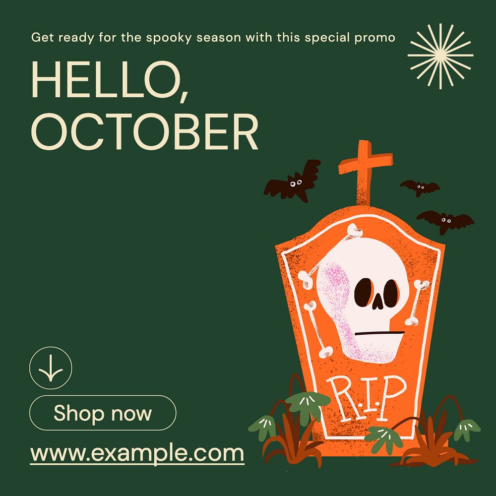 Hello October Instagram post template, editable text