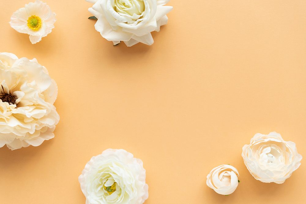 White flowers pattern on orange background