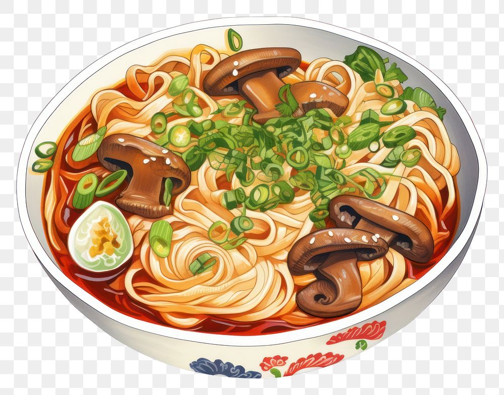 PNG Noodle soup plate food, digital paint illustration.