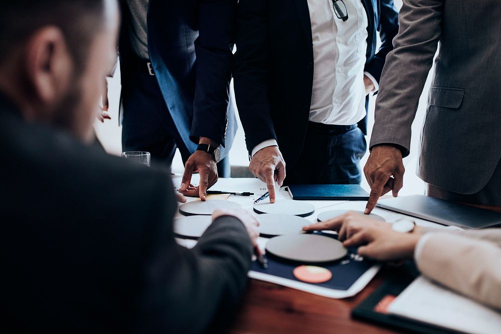 Business people using blank round paper for brainstorming