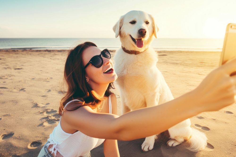 Selfie beach dog sunglasses.