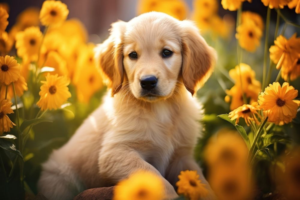 Puppy animal mammal flower.
