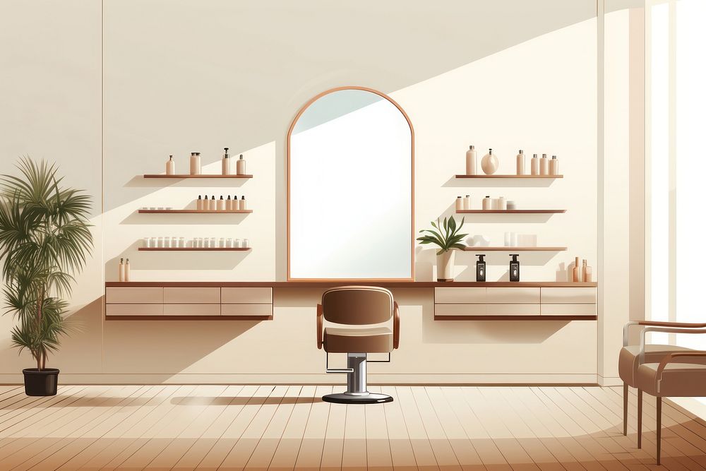 Hair salon furniture chair wall.