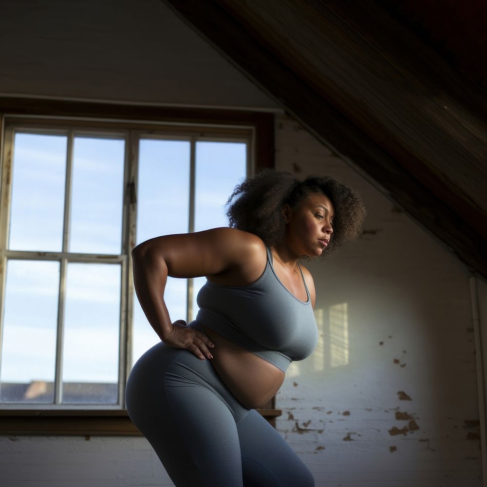 Chubby black woman exercise adult determination anticipation.