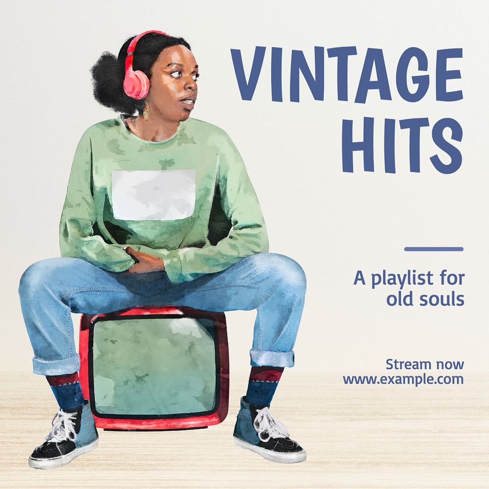 Vintage hits Instagram post template, editable text
