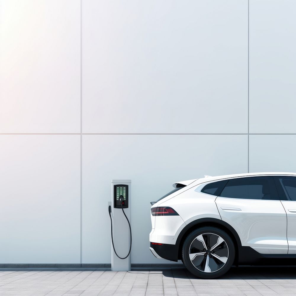 Photo of a white of SUV car at ev charging.