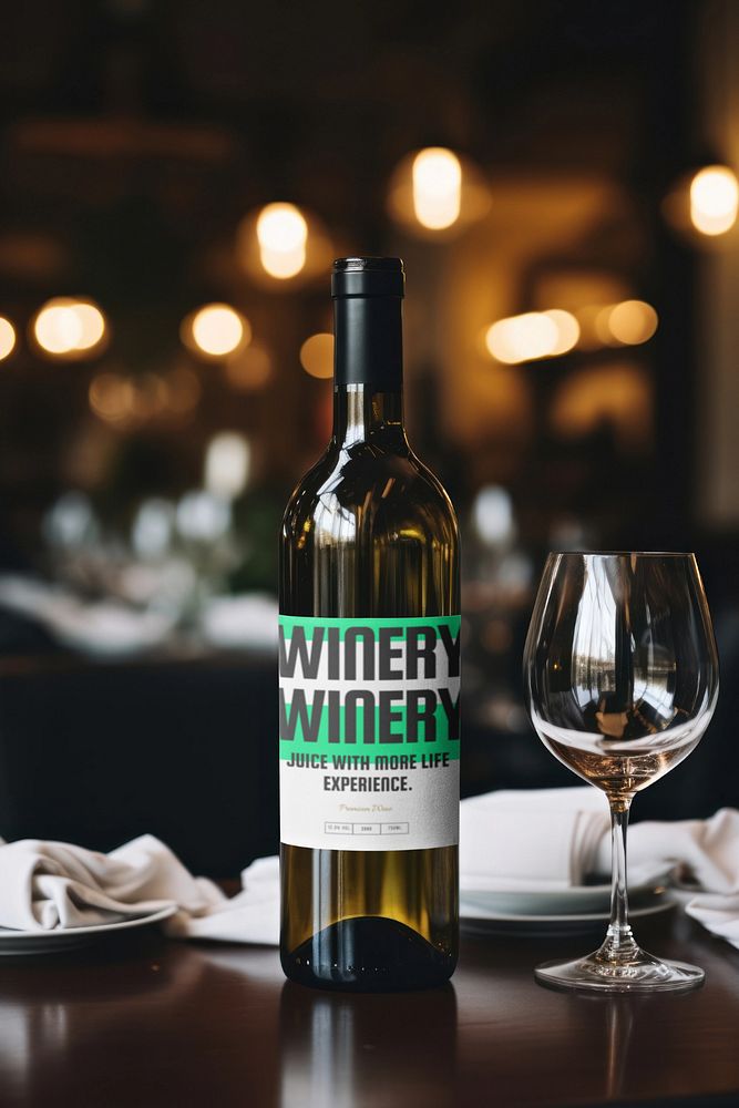 Wine bottle editable mockup, drink packaging