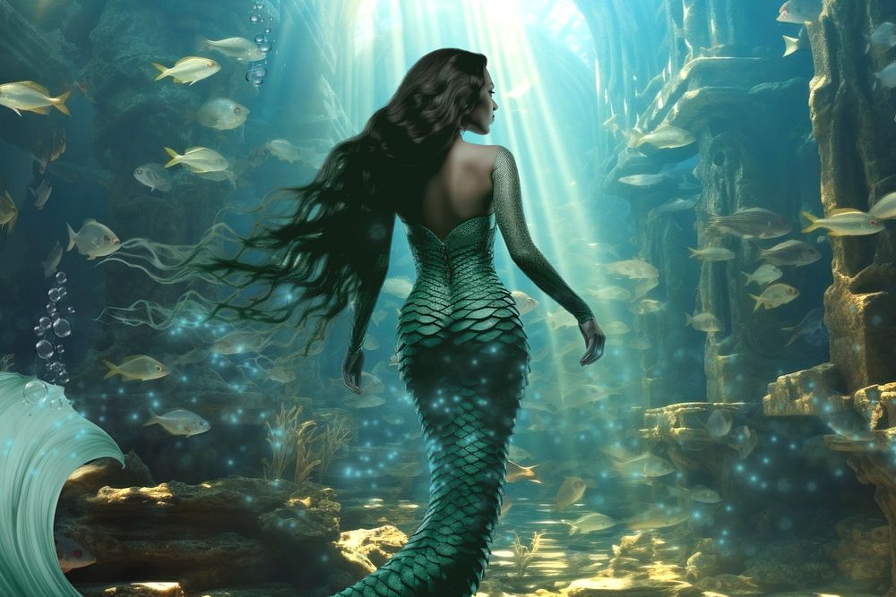 Mermaid underwater fantasy remix, editable design