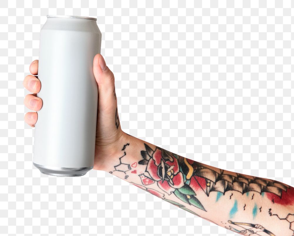 Hand holding a white aluminum can transparent png