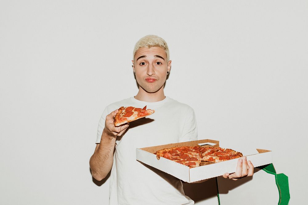 A man having a pepperoni pizza
