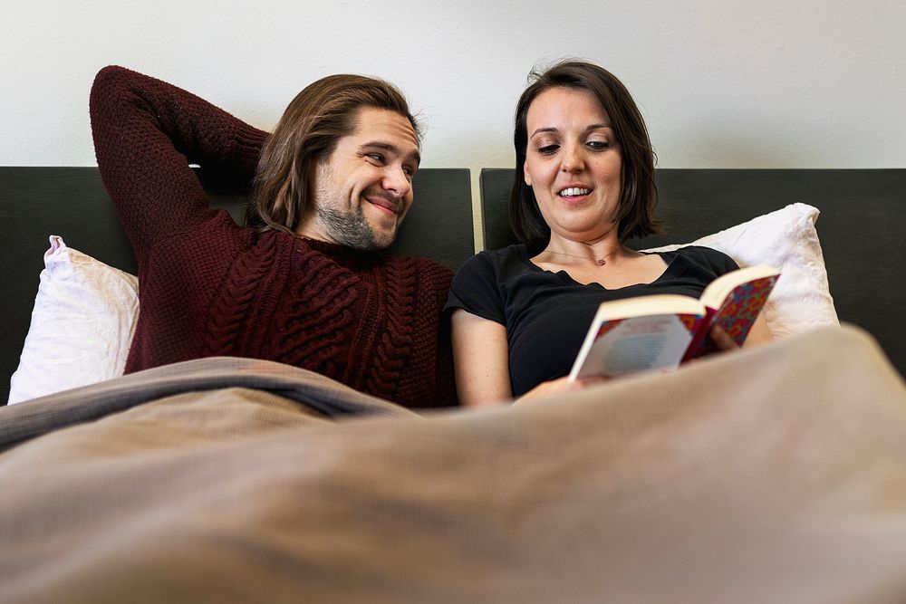 Husband and wife reading in the bed