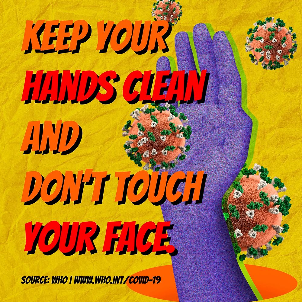Keep your hands clean and don't touch your face during COVID-19 background source WHO vector