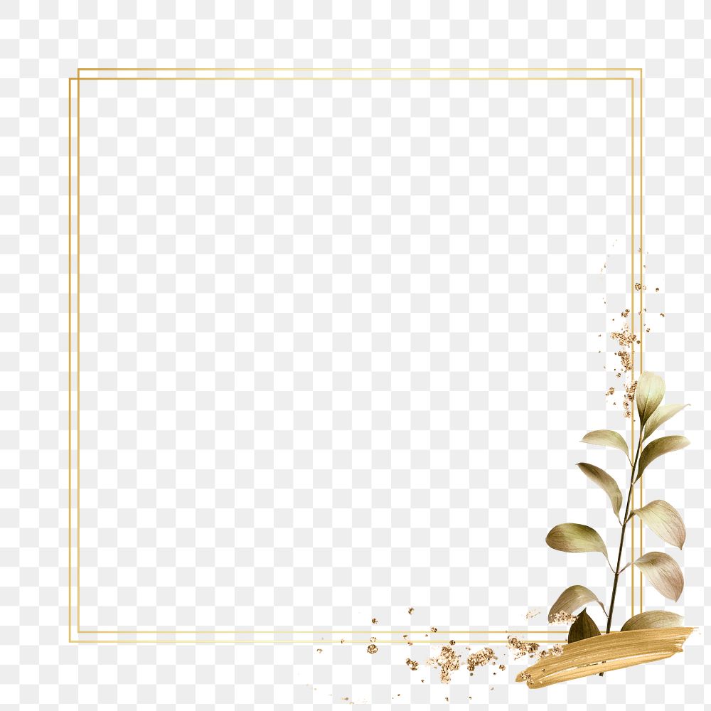 Leaf frame png with golden leaf in minimal style