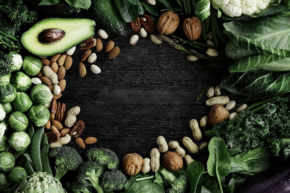 Raw vegetable frame with nuts and avocado