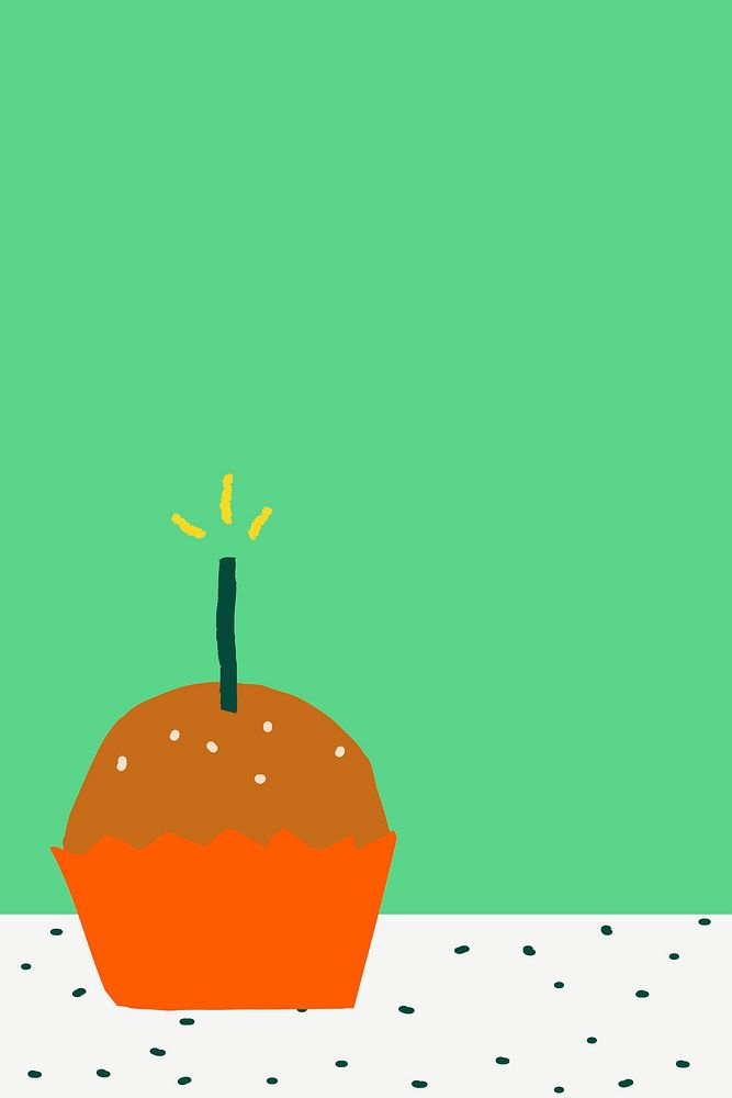 Green birthday cupcake background vector with gray border in doodle style