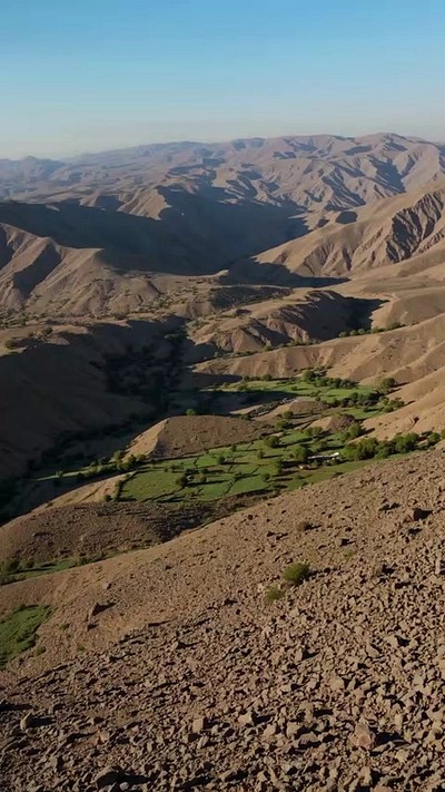 Afghan children stand next to their father