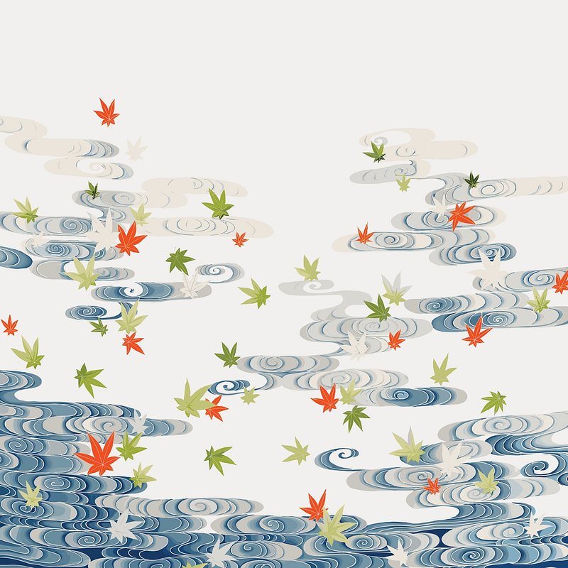 Vintage art mobile wallpaper, iPhone background, Susoshiki with maple leaves in the Tatsuta river, digitally enhanced public domain artwork