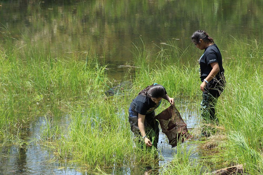 Students from Phoenix Military Academy search for amphibians during the 2016 BioBlitz events at Indiana Dunes NL. Original public domain image from Flickr