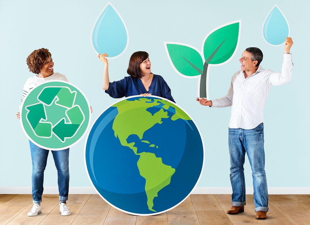 People with environment and recycling icons