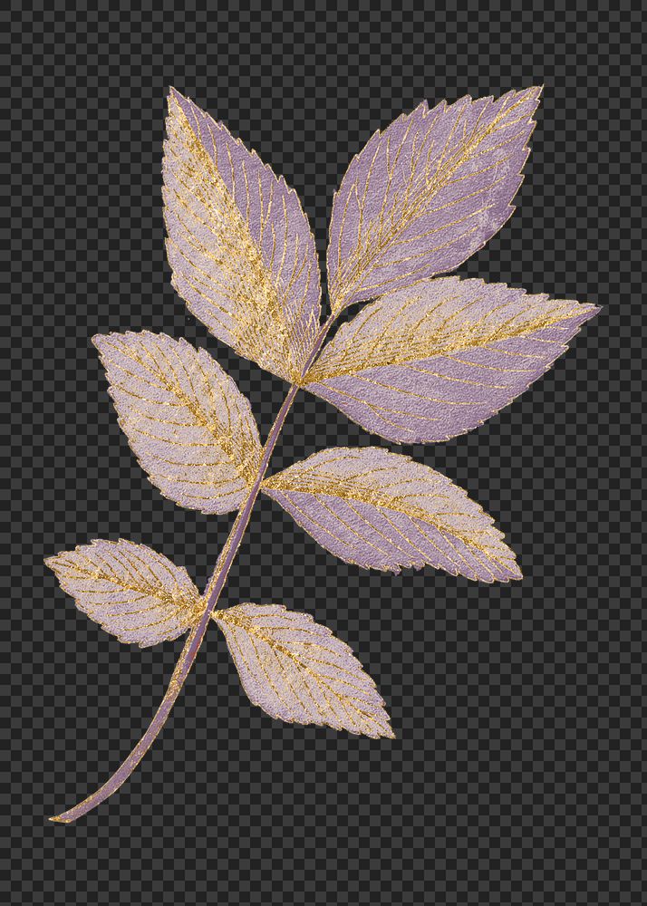 Aesthetic purple leaf png clipart, gold glitter decoration on transparent background