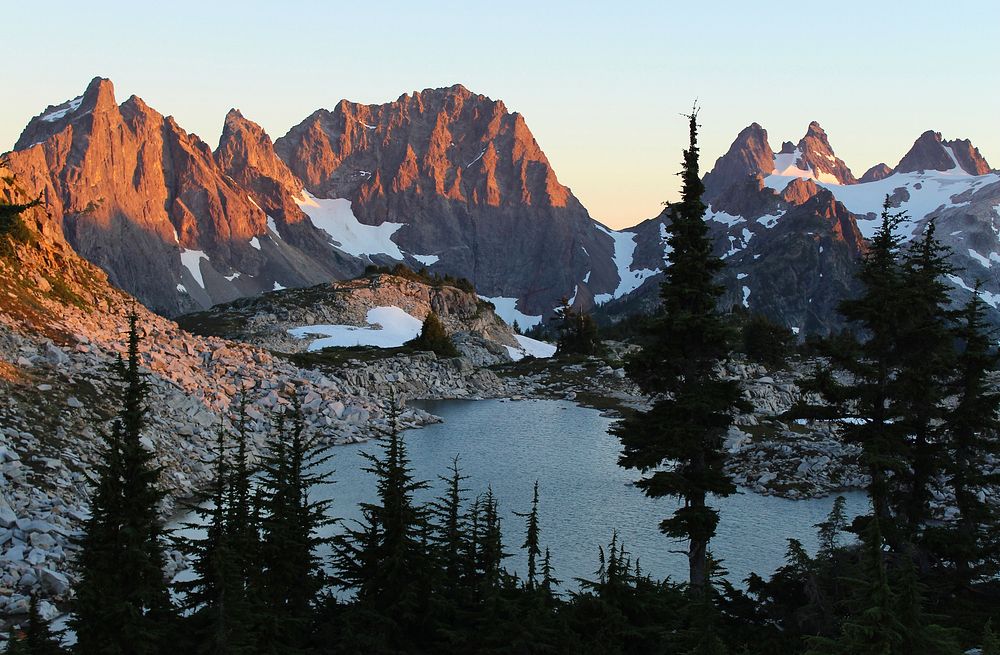 Sunset at Tank Lakes, Alpine Lakes Wilderness on the Mt. Baker-Snoqualmie National Forest. Photo by Matthew Tharp. Original public domain image from Flickr