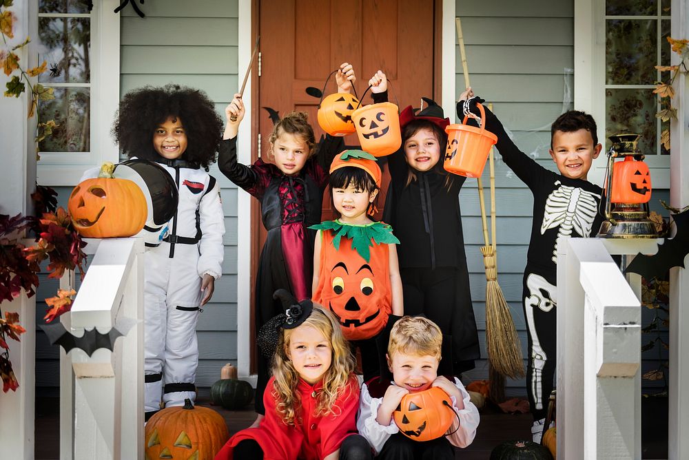 Little children in Halloween costumes