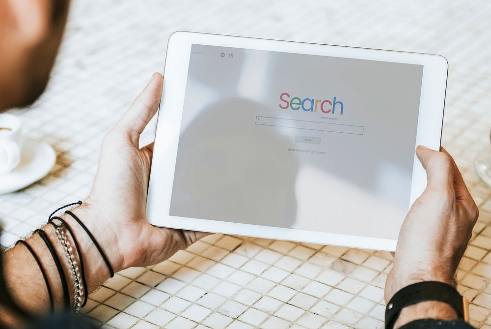 Man using tablet searching on website