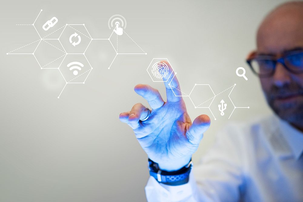 Man scanning his fingerprint on a screen