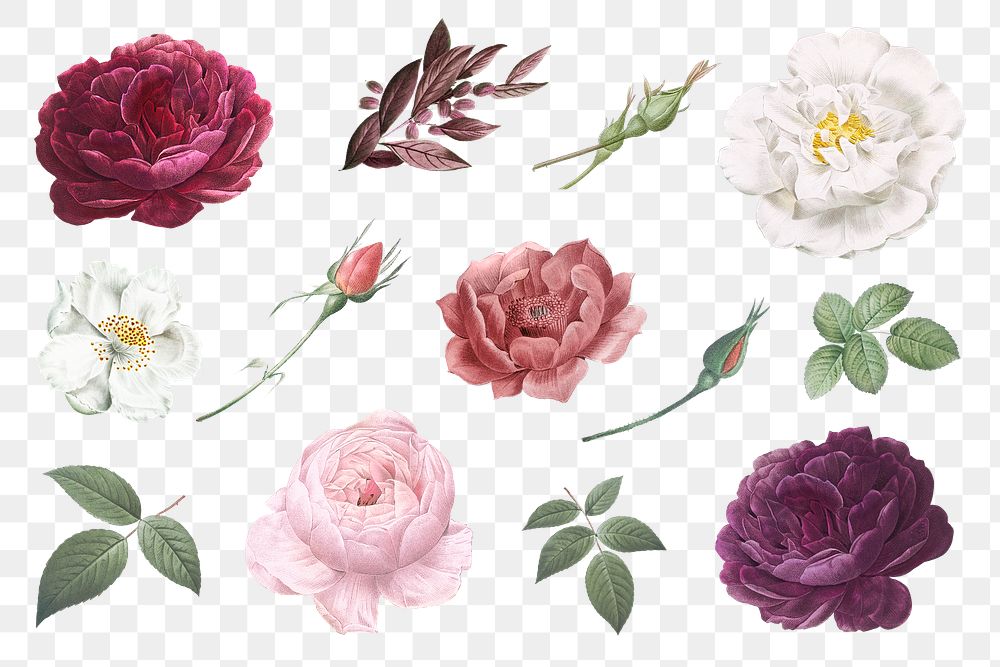 Beautiful hand drawn various roses collection transparent png