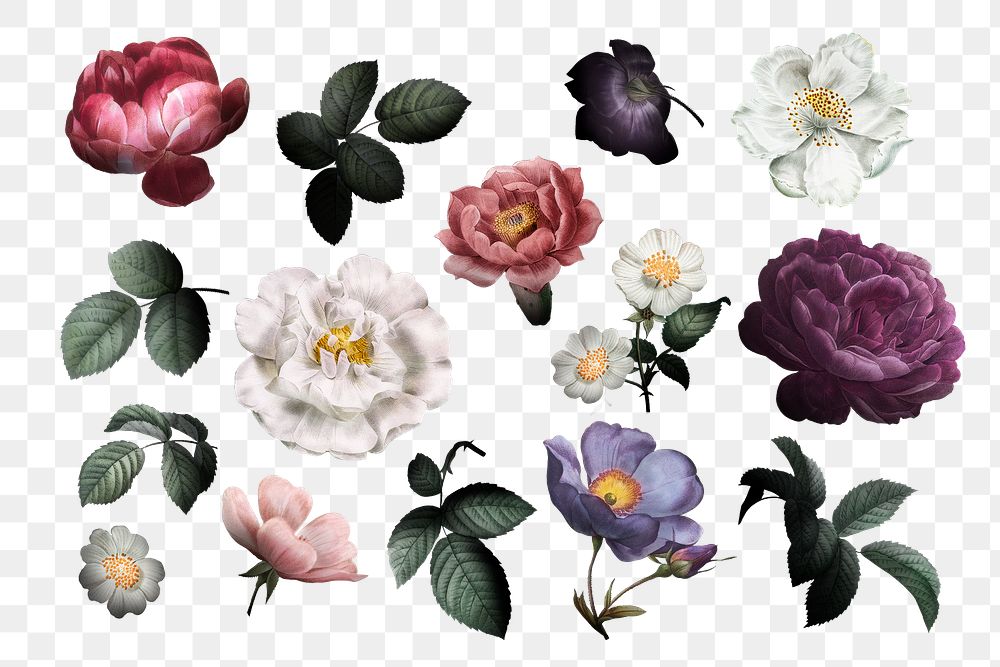 Beautiful hand drawn various roses collection transparent png