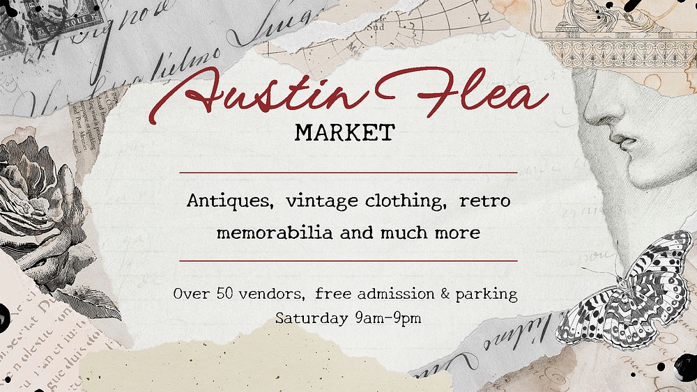 Aesthetic banner template, vintage chic editable invitation collage for social media psd
