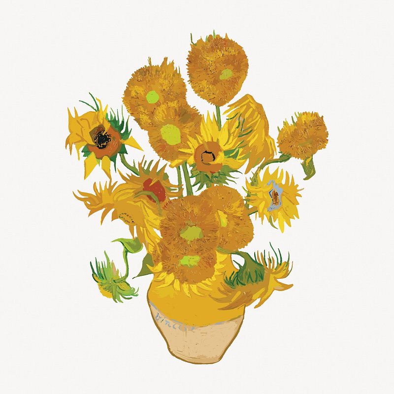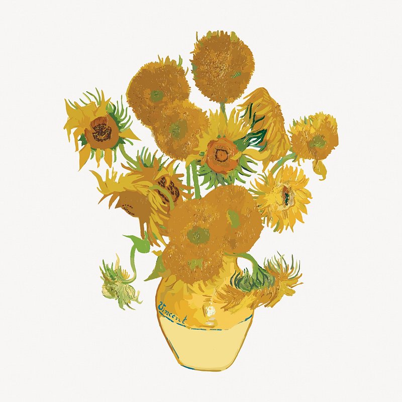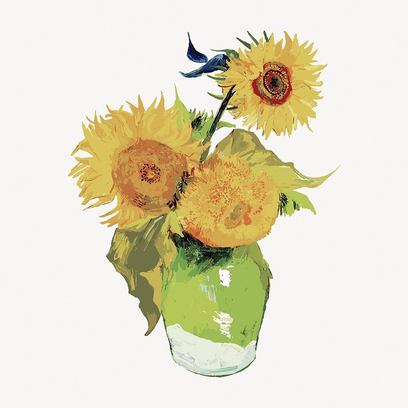 Sunflowers png sticker from Van Gogh’s Vase with Twelve Sunflowers, famous flower artwork on transparent background, remastered by rawpixel