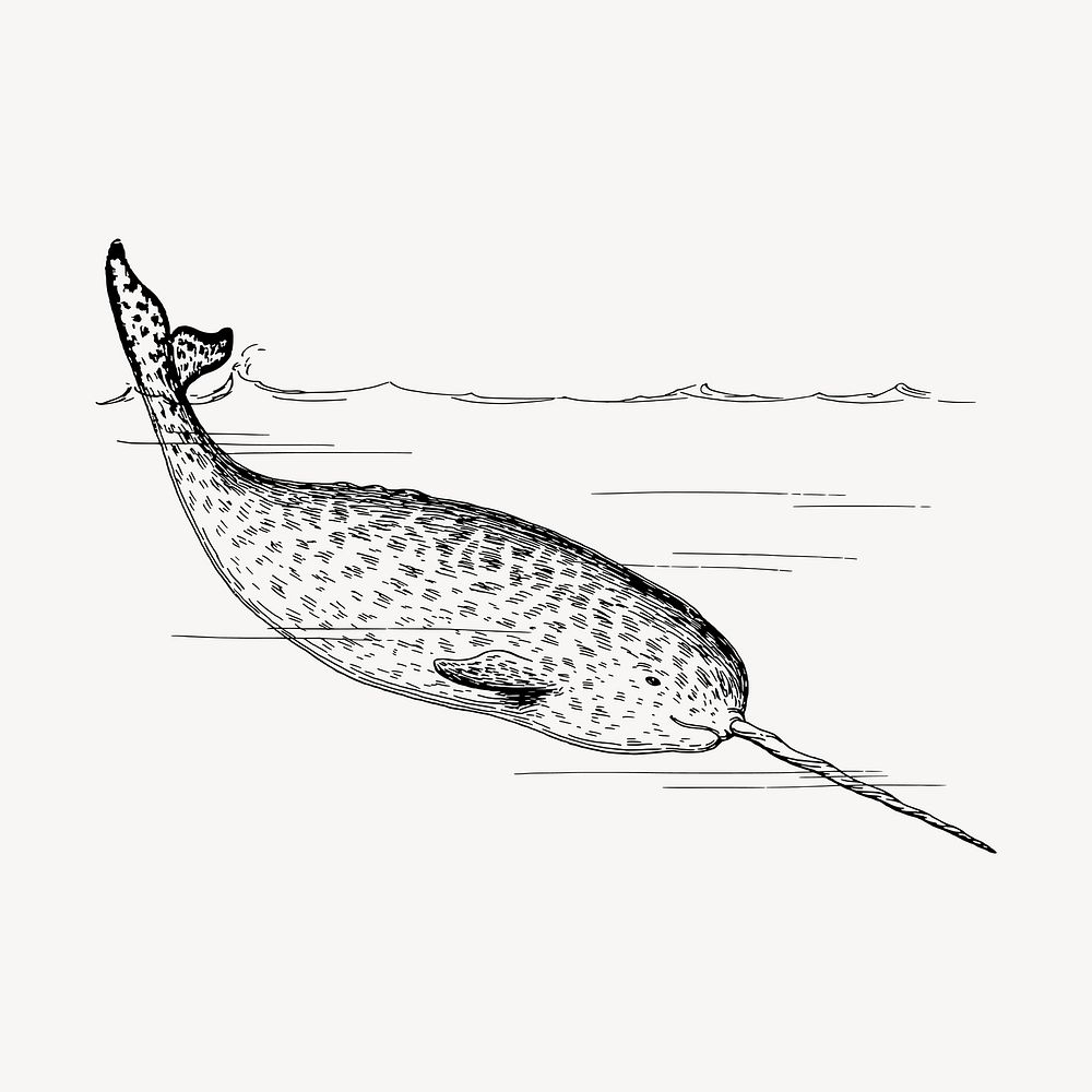 Narwhal clipart, vintage sea life illustration vector.