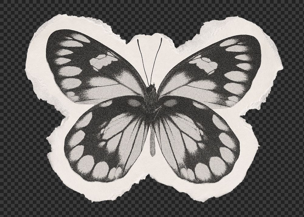 Black butterfly png sticker, ripped paper transparent background