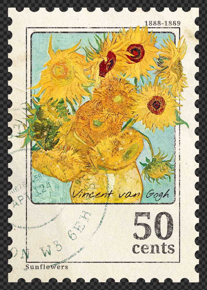 Png sunflower, Van Gogh, stamp sticker, transparent background, remixed by rawpixel