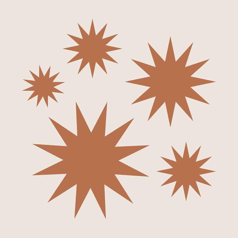 Brown sunburst icon sticker, flat geometric shape psd