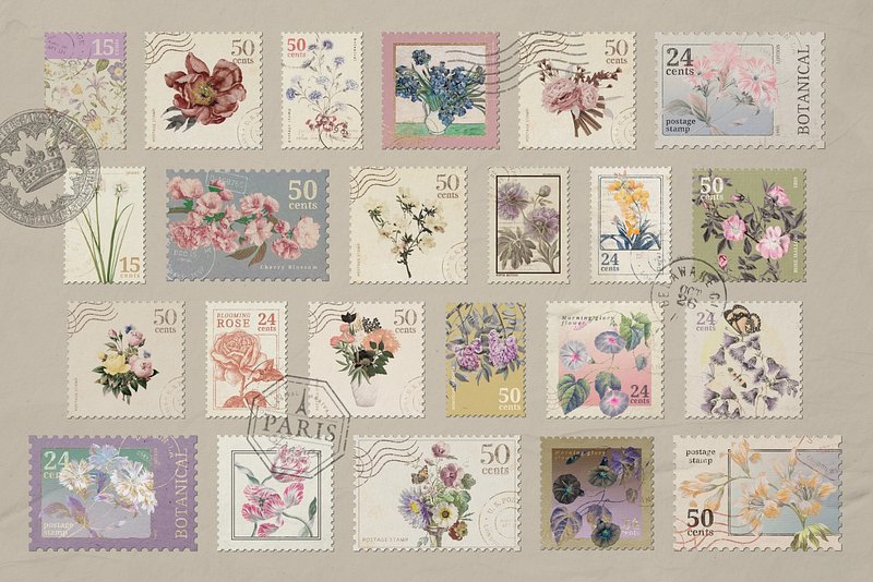 PNG aesthetic postage stamp sticker, ephemera coral collage element, transparent background, remixed by rawpixel