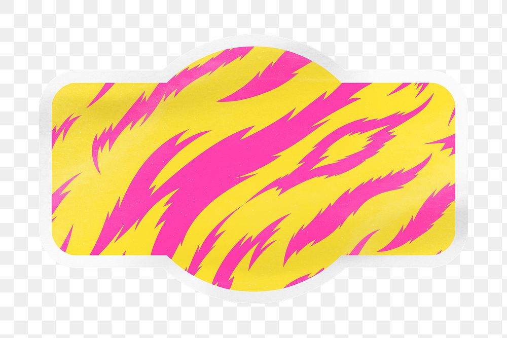 Neon tiger png animal print, pattern digital sticker, badge shape in transparent background