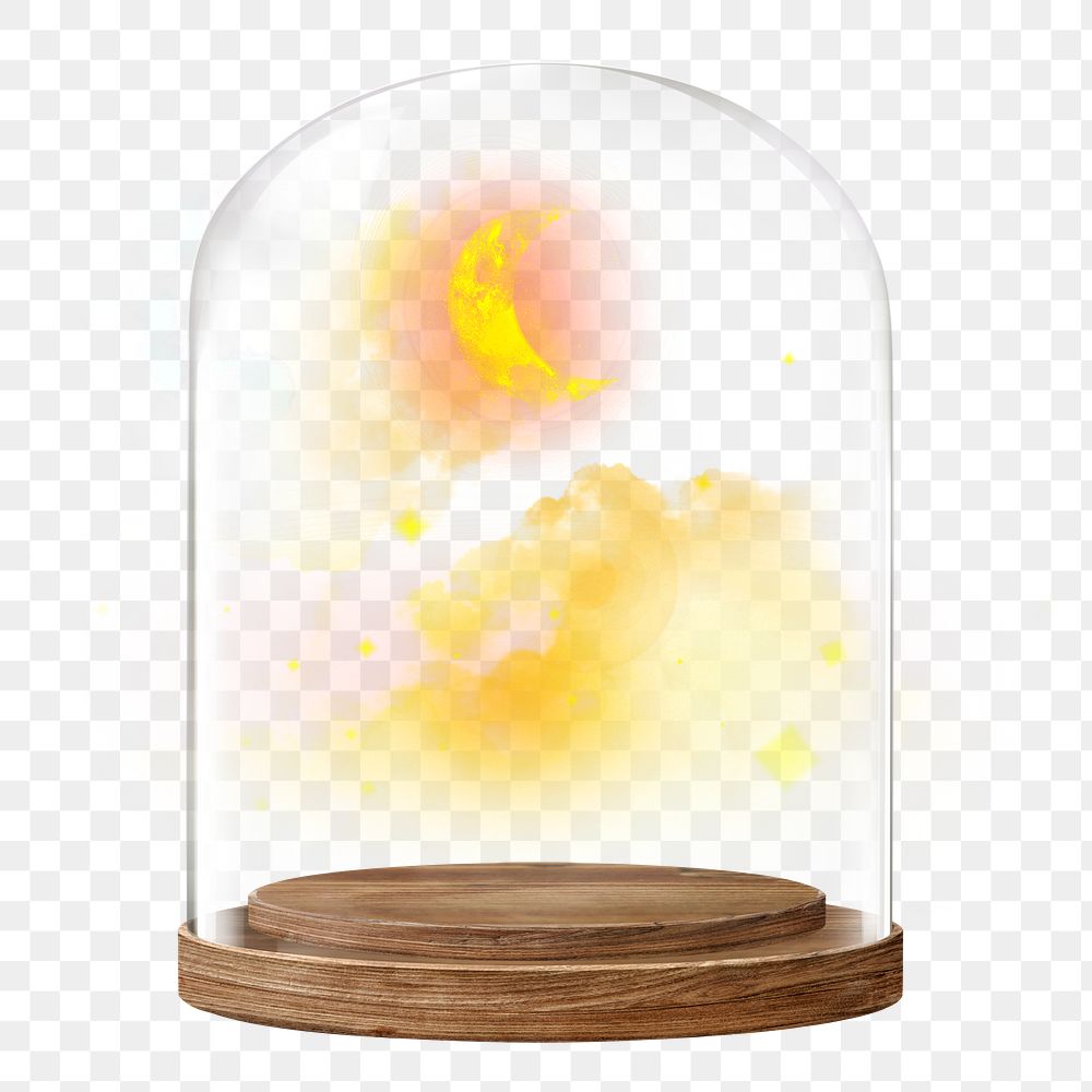 Crescent moon sky png glass dome sticker, weather concept art, transparent background