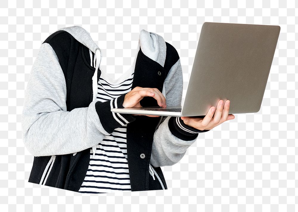 Headless png college student sticker, surreal education remixed media, transparent background