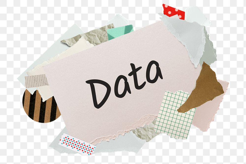 Data png word sticker, aesthetic paper collage typography, transparent background