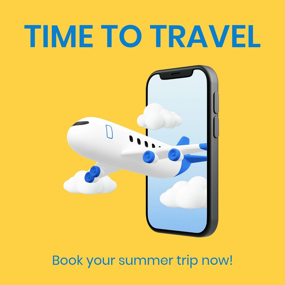 3D Travel Instagram ad template, summer trip design